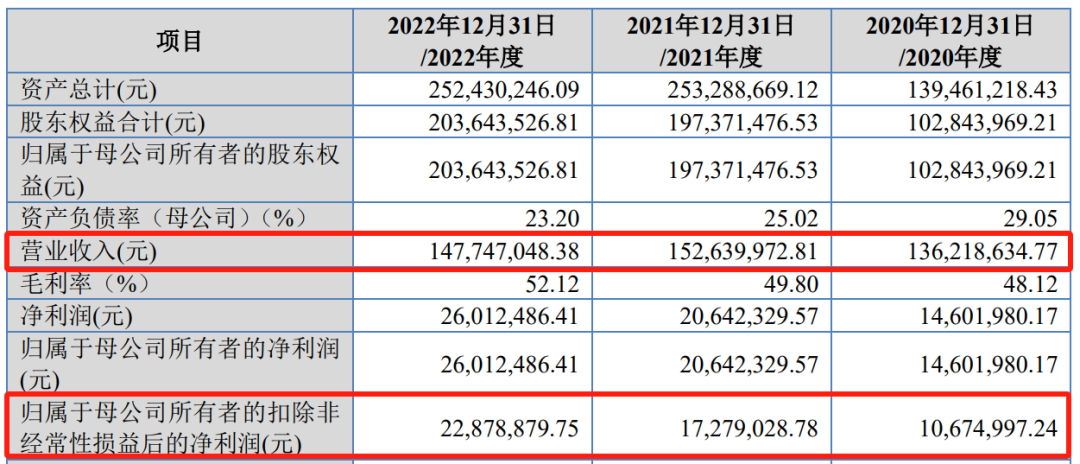 我们来看业绩,他这个收入偏小,只有1.5个亿左右。我过去多次说过,北交所虽然说名义上不要求收入规模,实际上还是有一定的偏好,最好是有两个亿。他的这个利润,从披露的报告期来看明显不够,只有2,000万出头。
